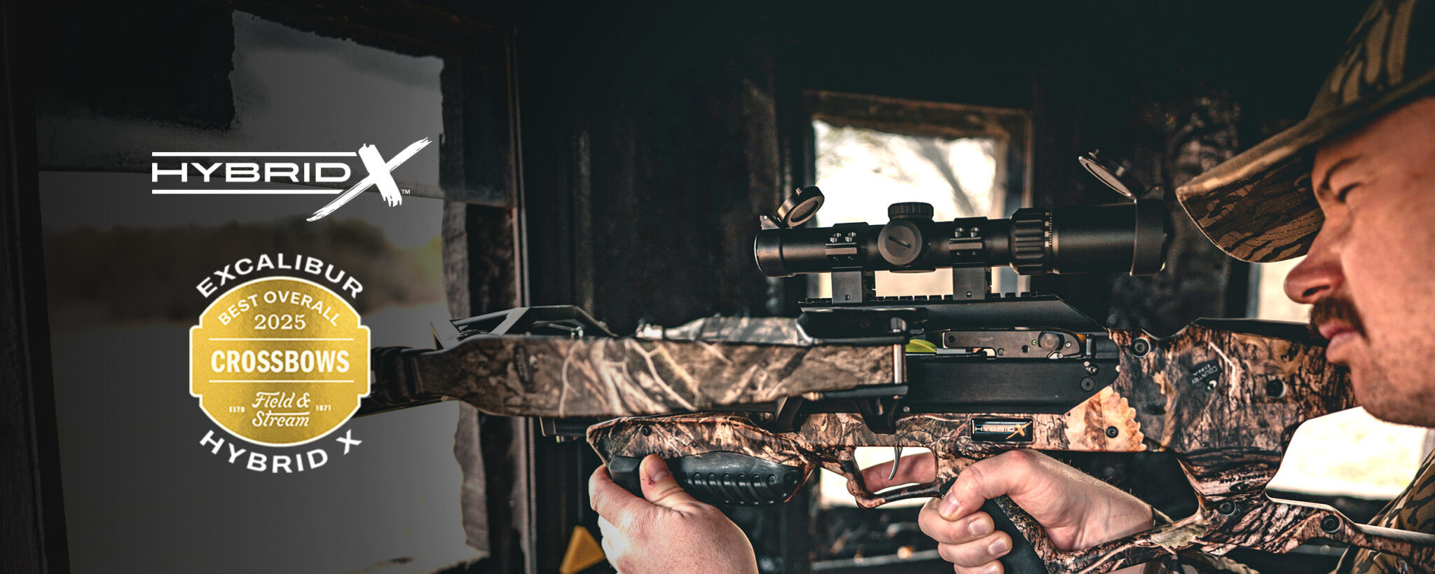 The Hybrid X crossbow is a new platform concept that combines the technology and performance of Excalibur's compression molded limbs and Charger X integrated crank with a custom cam design to reduce the overall width of the crossbow and add additional speed that is not achievable with recurve limbs alone. It’s an unstoppable new breed. Combining our legendary brute dependability with speed and energy to match. Built to maneuver with our narrowest and most balanced profile yet. With InnerDrive cams fully shielded by our nearly indestructible recurve limbs for utmost confidence in extreme conditions.