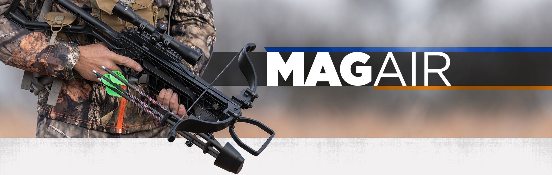 The MAG Air is the lightest, fully accessorized crossbow that no other competitor can match. In fact, a fully accessorized Mag Air is up to one pound lighter than most competitors' crossbows without their accessories installed! The heart of this game-changing crossbow is the Gen2 Synthetic mainframe, specifically engineered to reduce weight while maintaining maximum strength, not to mention a killer look. The Mag Air is a budget-friendly bow without sacrificing the ability to go anywhere, hunt any game in any situation.